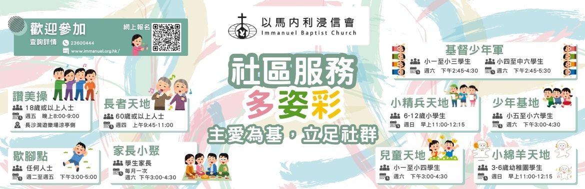 * 本會各聚會前兩小時若已懸掛黑色暴雨警告訊號、八號或以上風球,該聚會將取消。